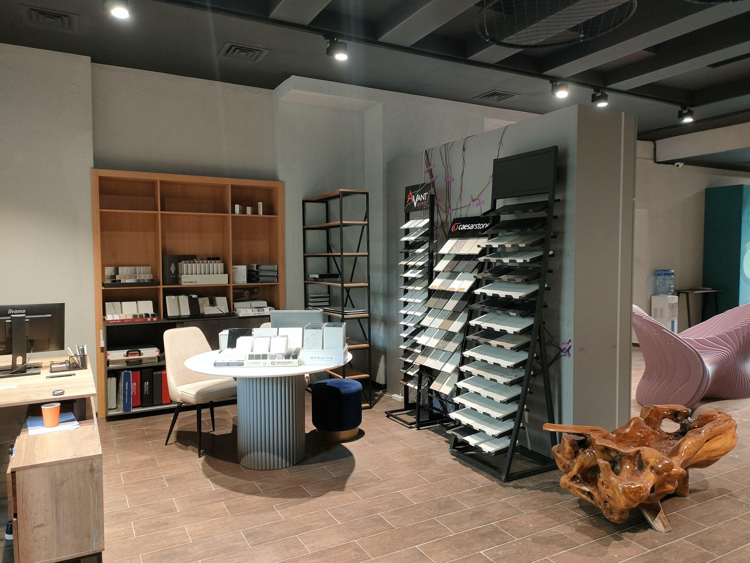 Шоурум представляет собой уникальное пространство, где любители красивых и функциональных материалов могут найти и подобрать идеальную расцветку камня для своих проектов.