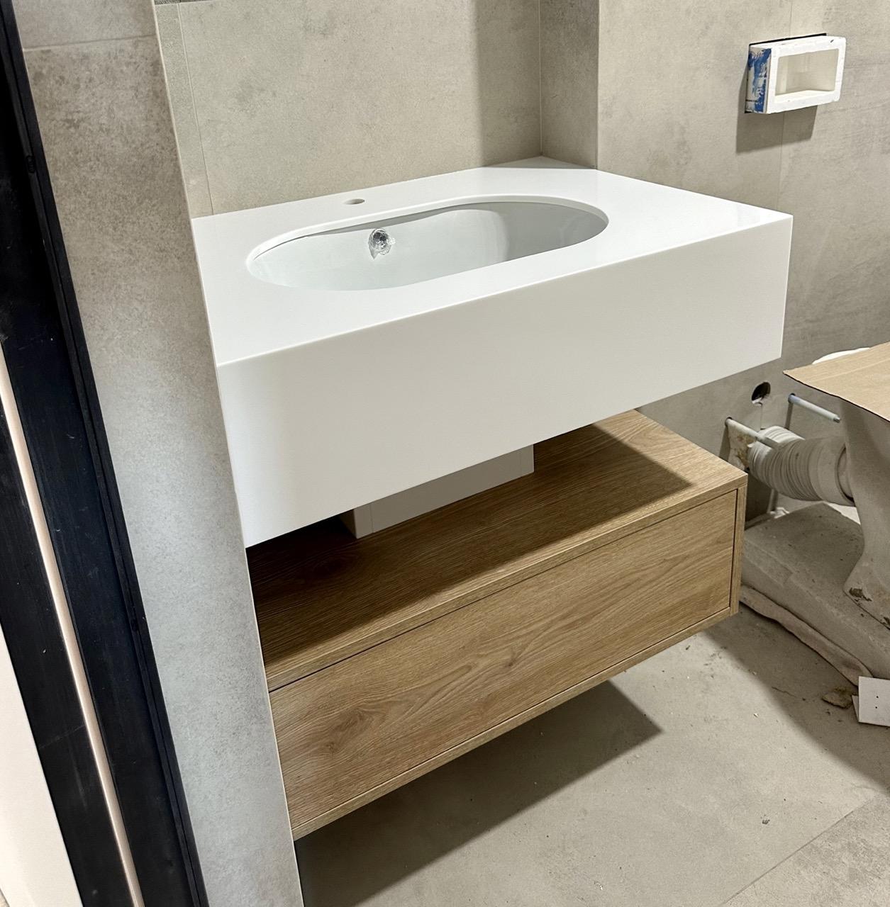 Акриловая столешница и короб для сифона в ванную комнату