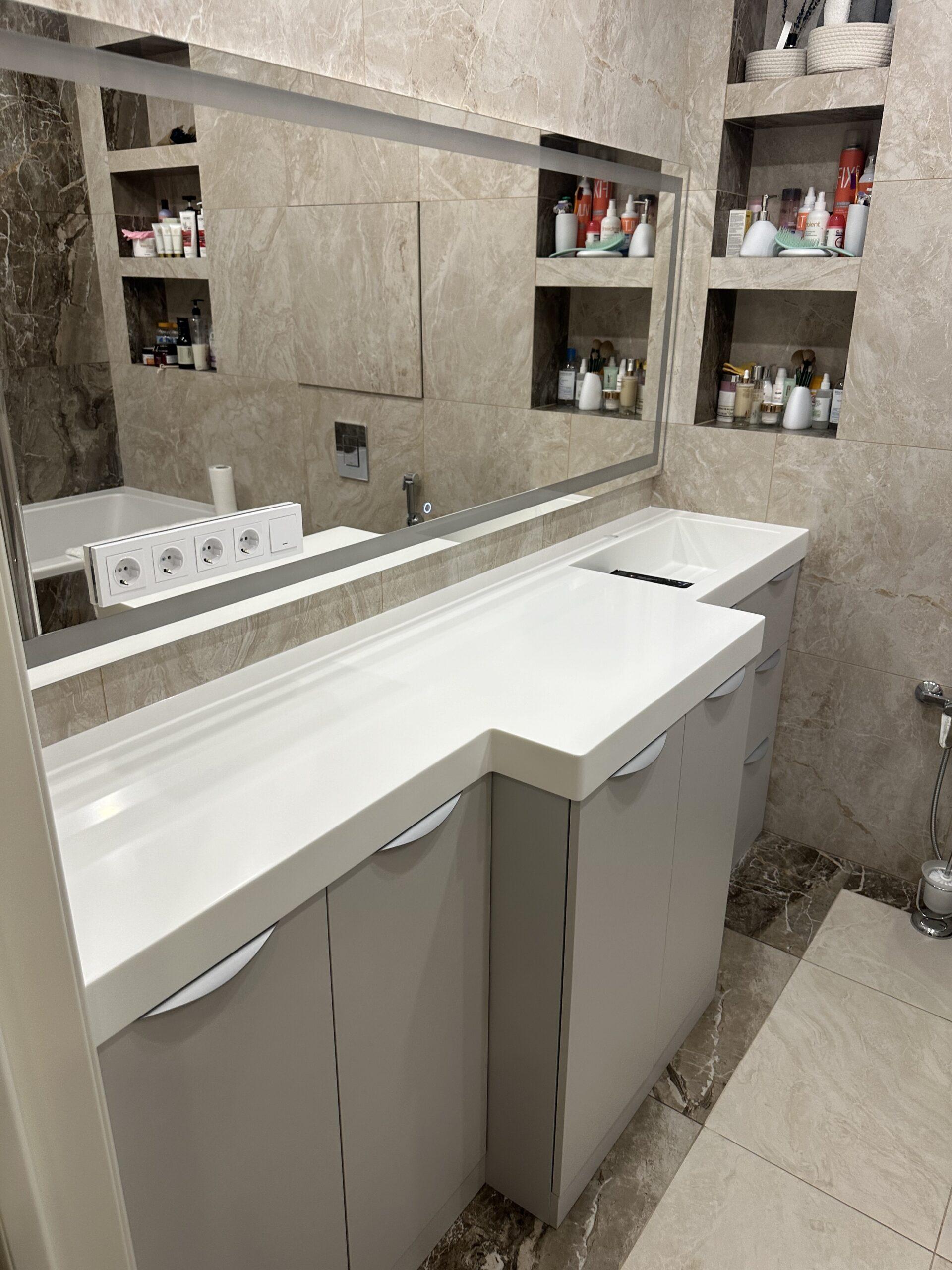 Акриловая столешница с раковиной для ванной комнаты