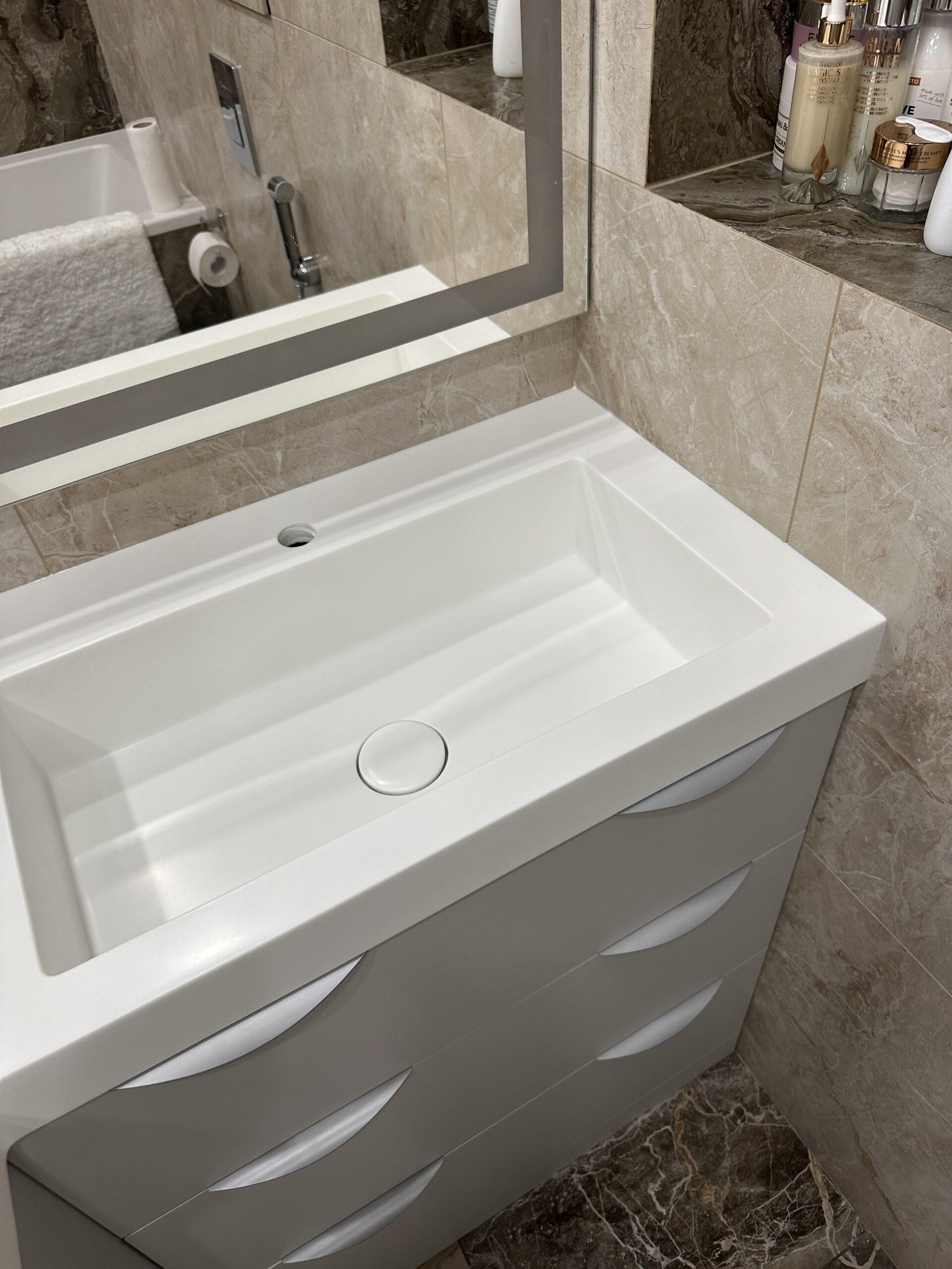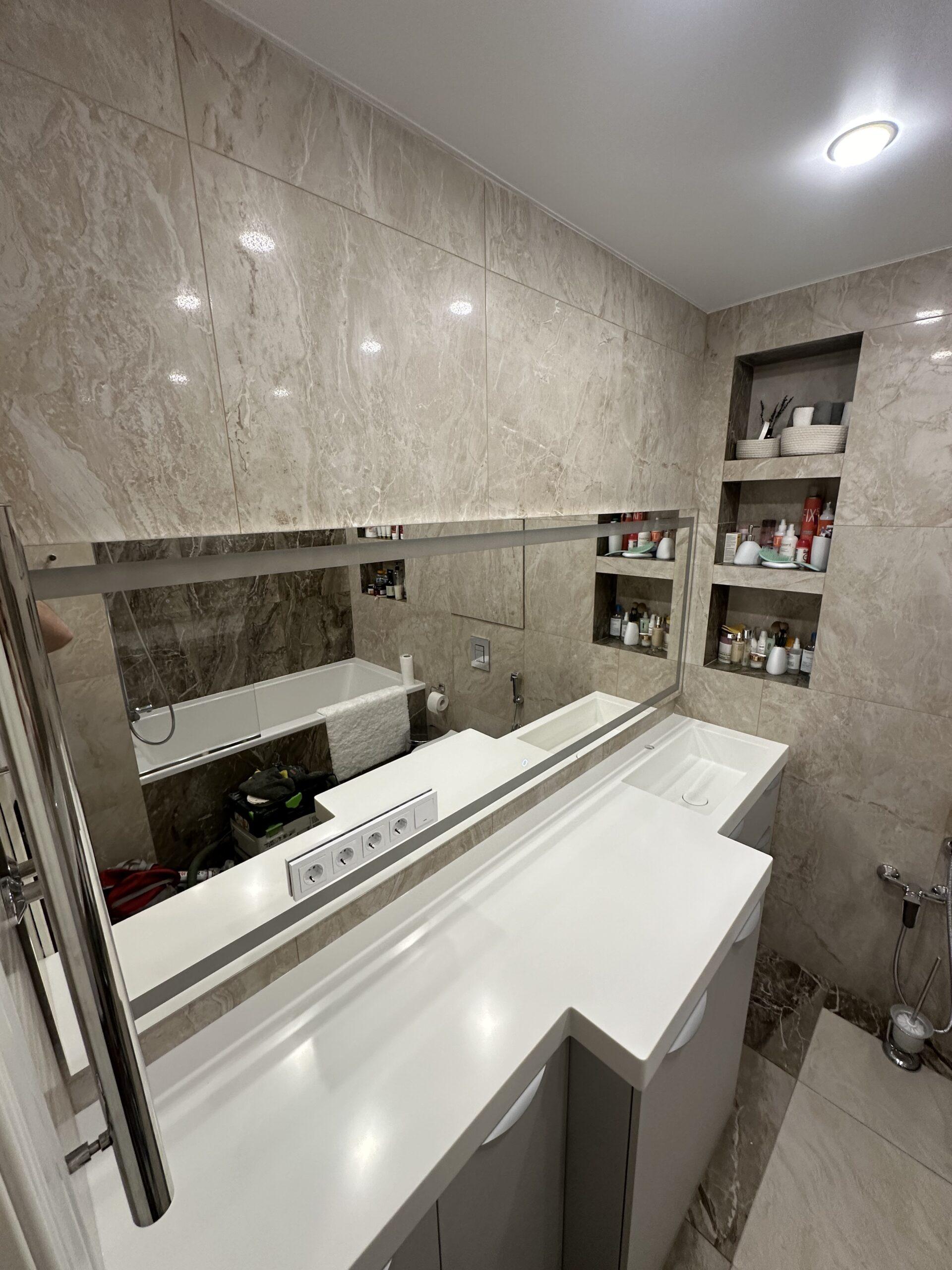 Акриловая столешница с раковиной для ванной комнаты
