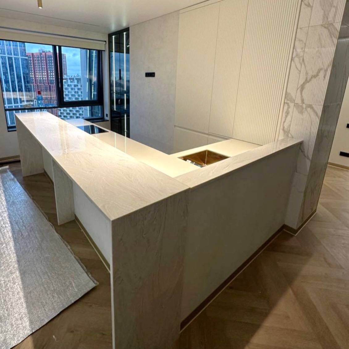 Акриловая угловая столешница с барной стойкой