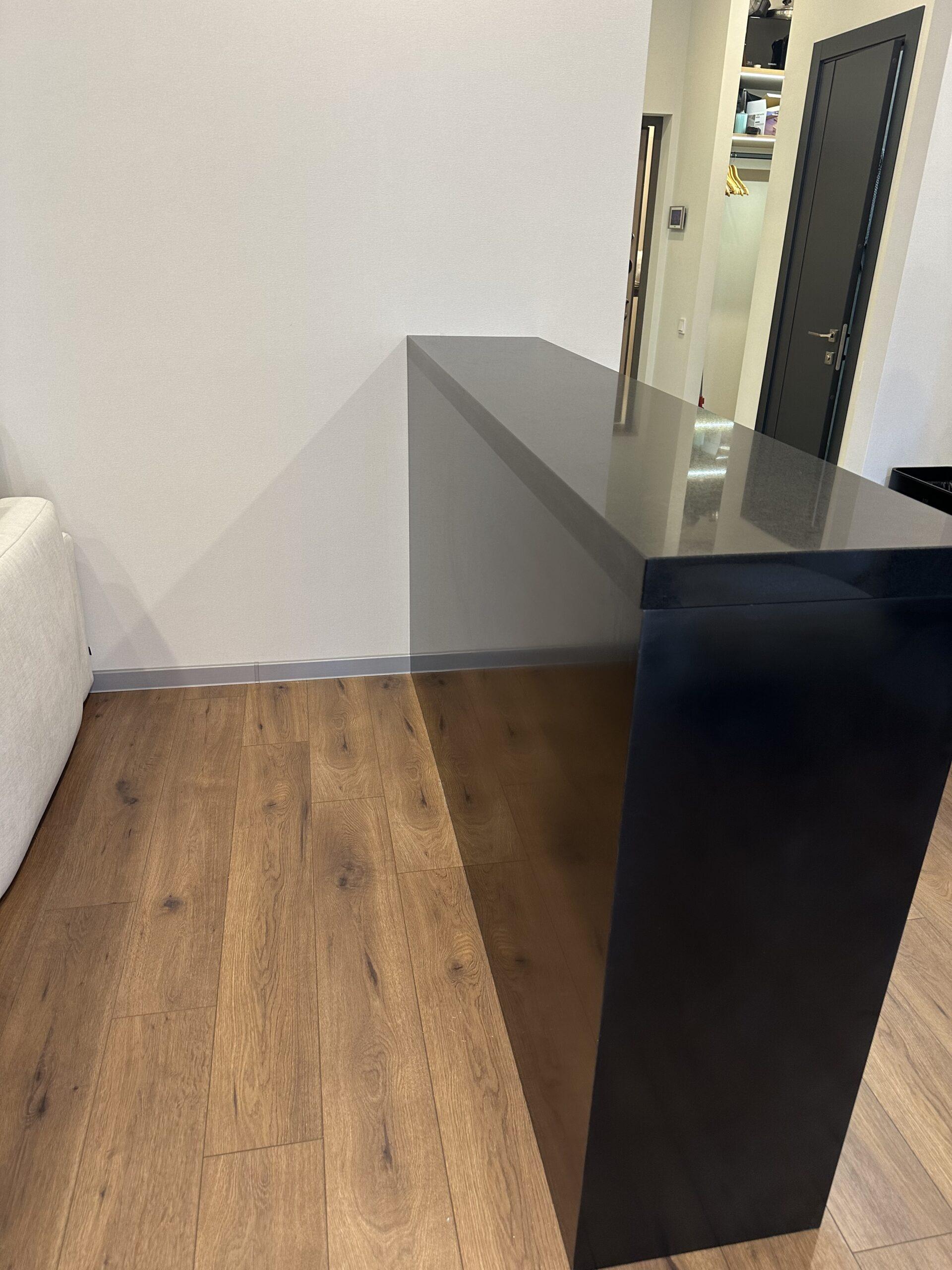Для столешницы выбрали черный кварцевый агломерат с мелкими вкраплениями - Caesarstone 3100 Jet Black.