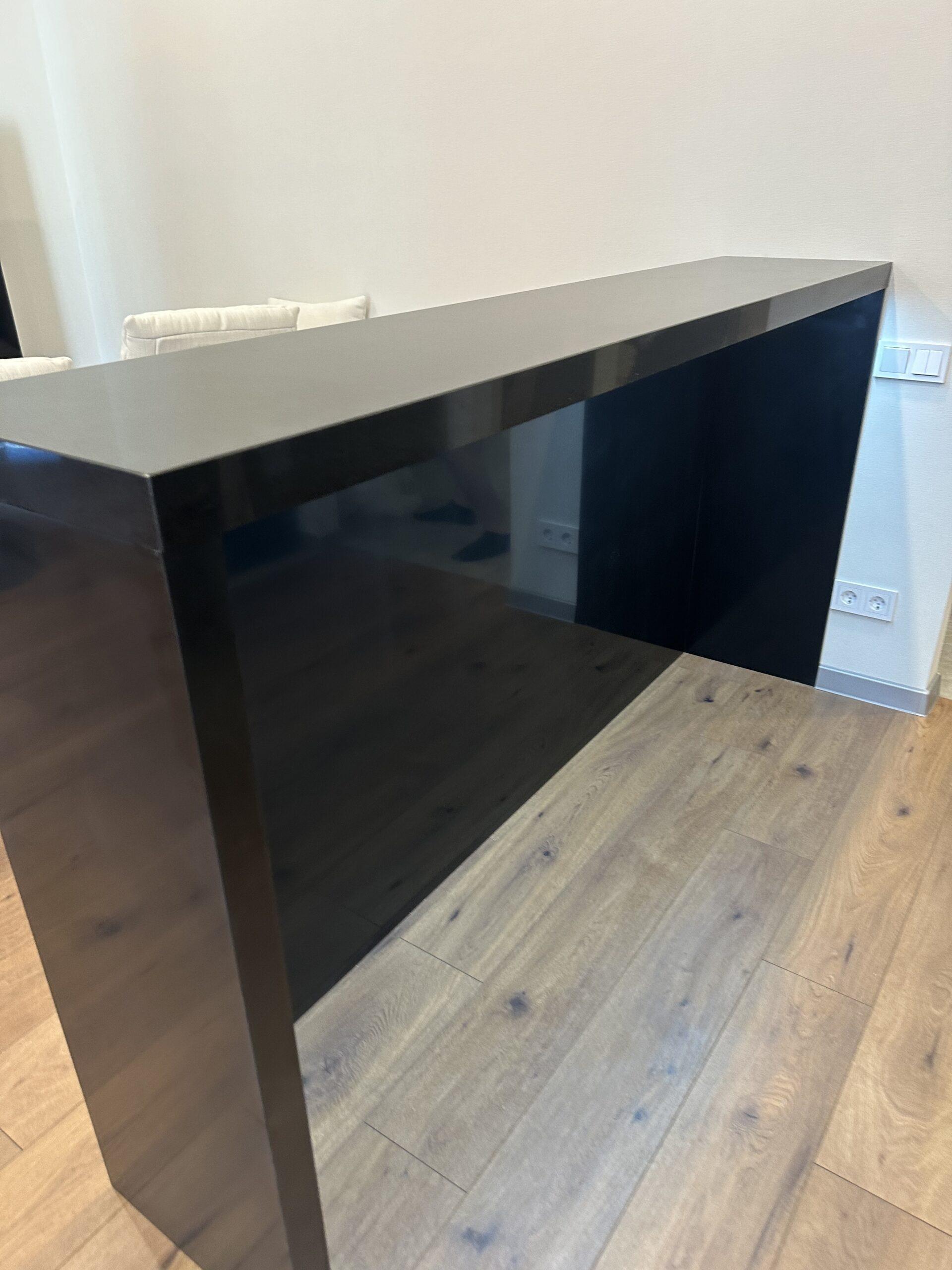 Барная стойка с подворотом из камня. Это позволяет сделать изделие целостным и гармоничным.