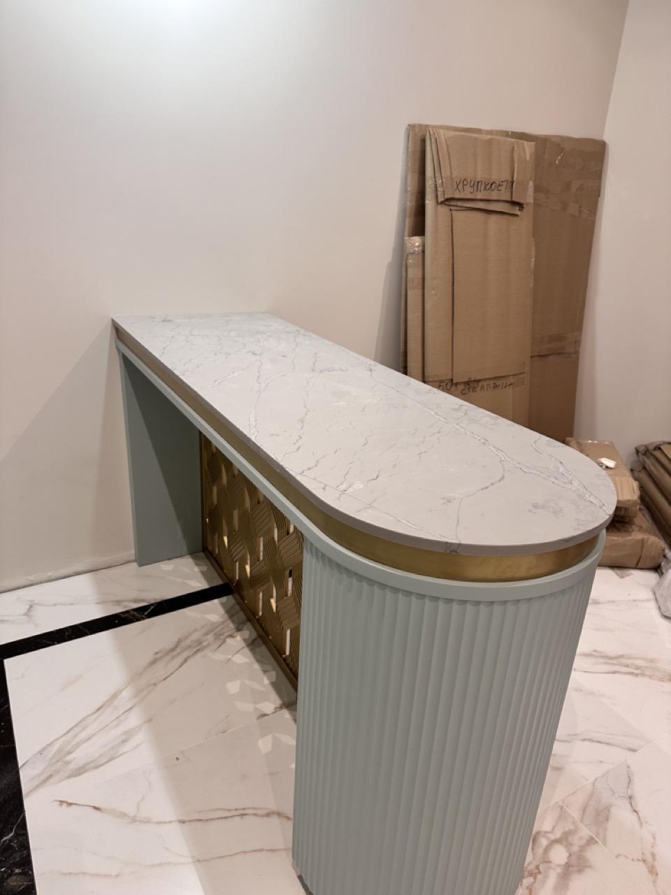 Кухонные столешницы на гарнитур и остров и мойка из кварцевого агломерата
