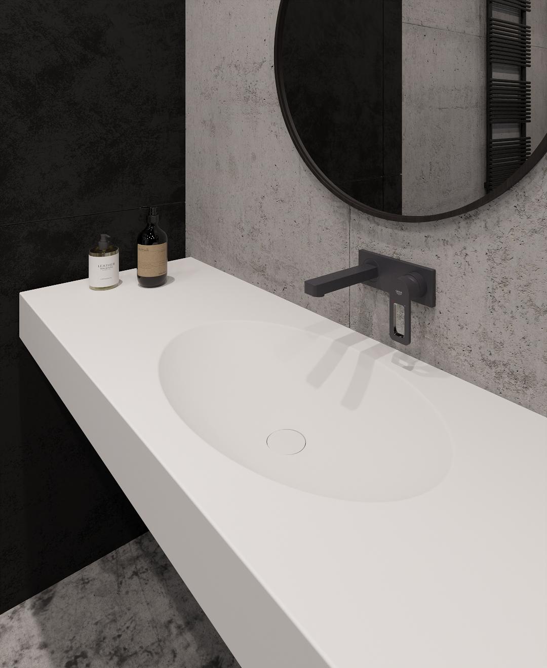 Подвесная столешница с интегрированной овальной раковиной (столешница (1800-2500)х520 Н120)