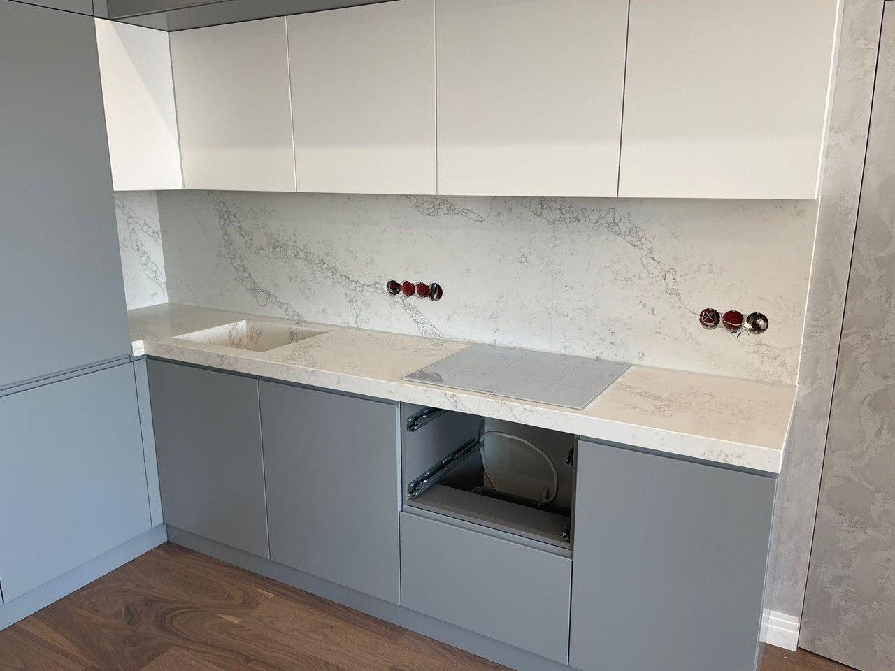 Столешница, фартук и мойка на кухню из кварцевого агломерата