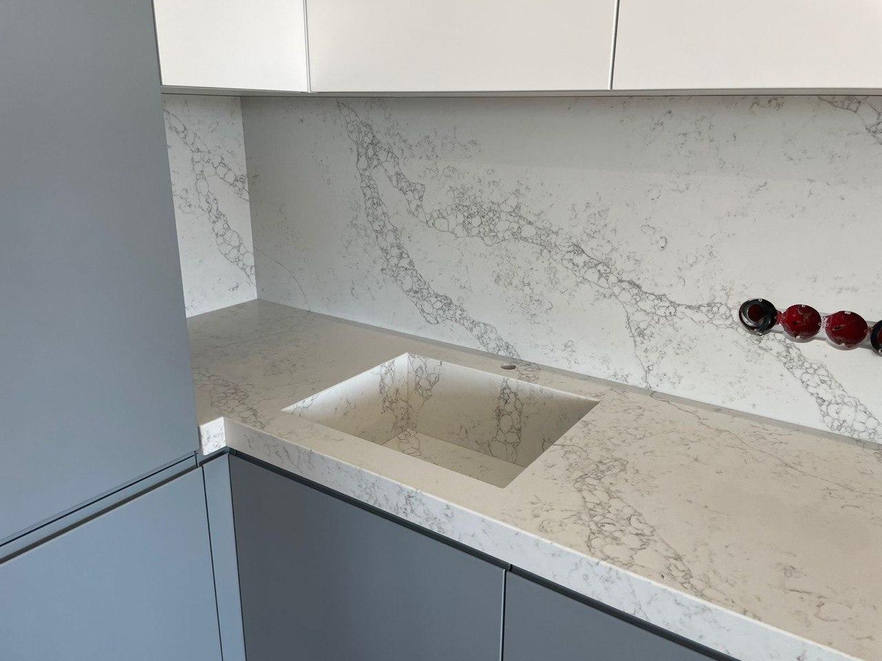 Столешница, фартук и мойка на кухню из кварцевого агломерата