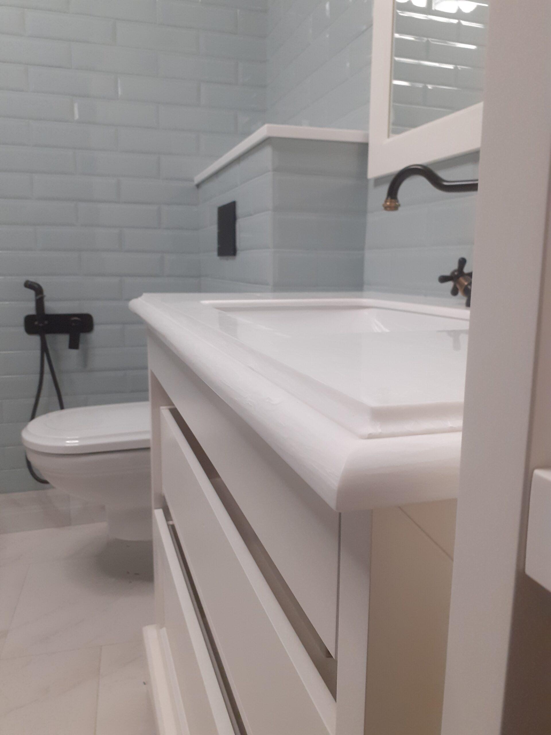 Столешница и полка в ванную комнату из искусственного камня