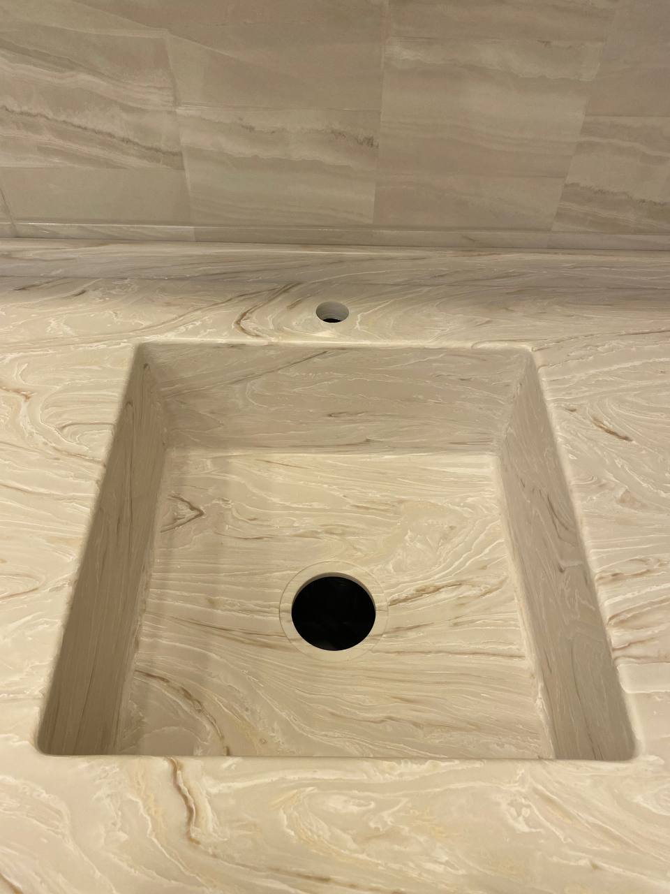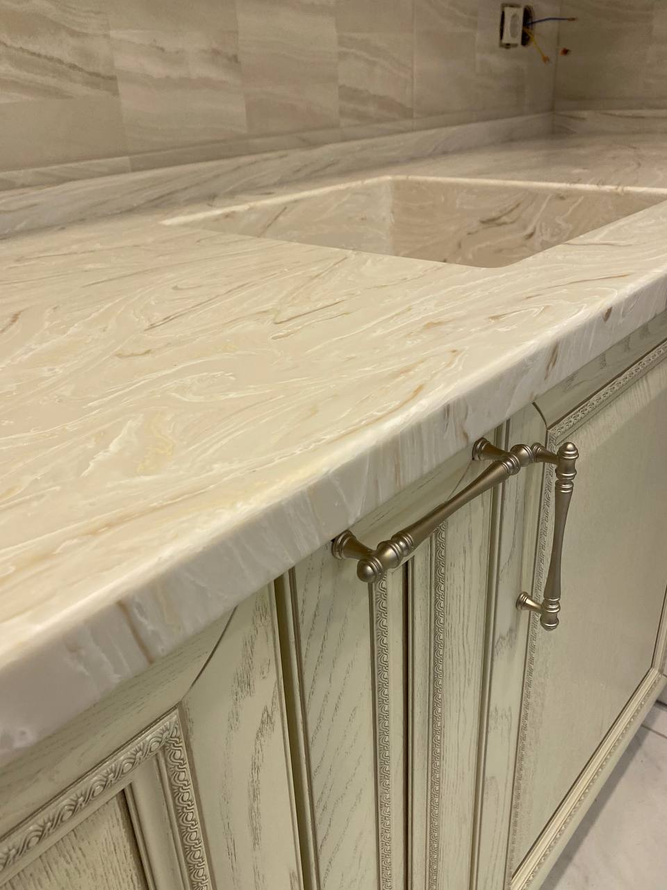 Столешница из искусственного камня и каменная мойка для кухни