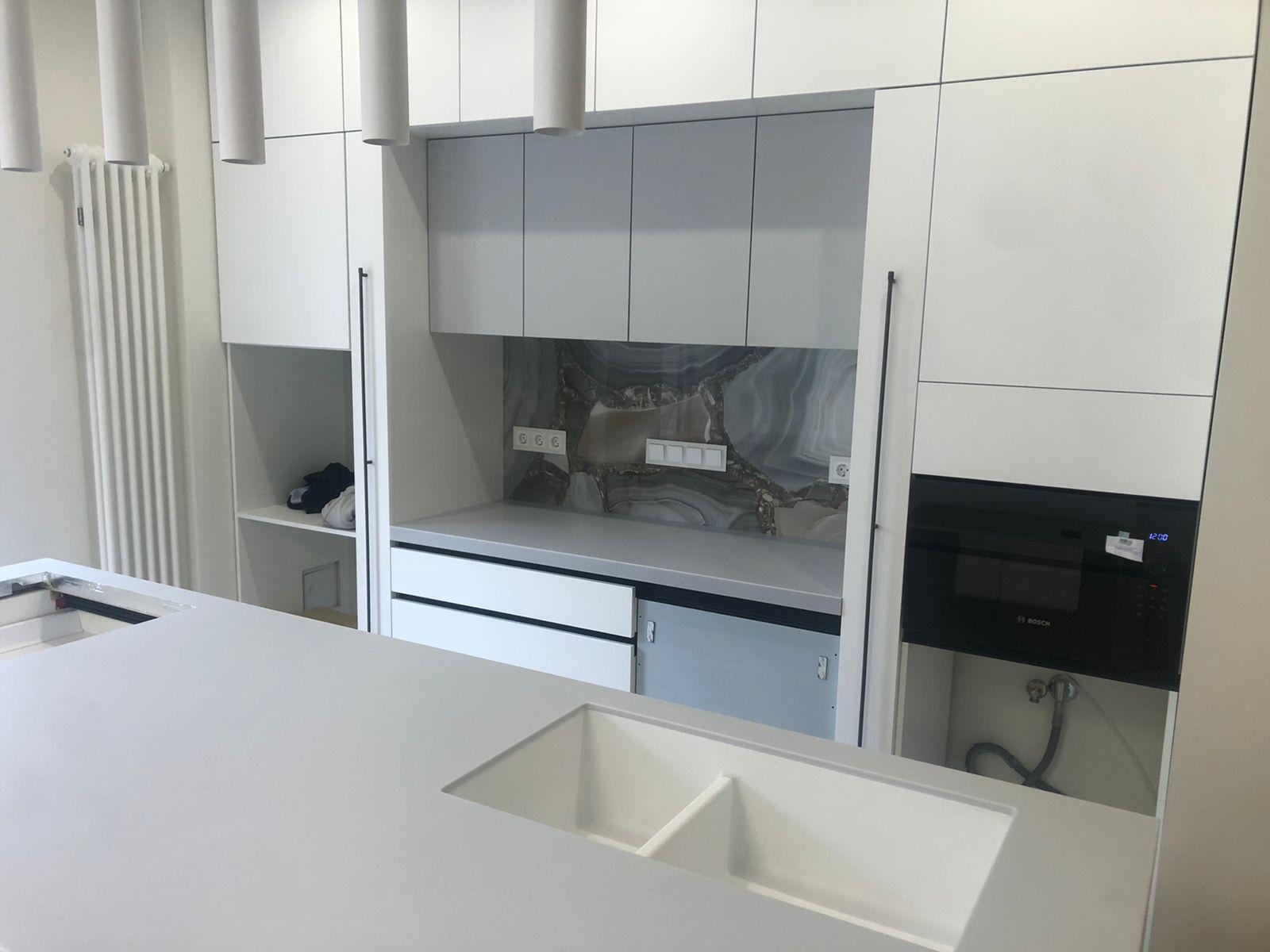 Столешница из искусственного камня и остров для кухни