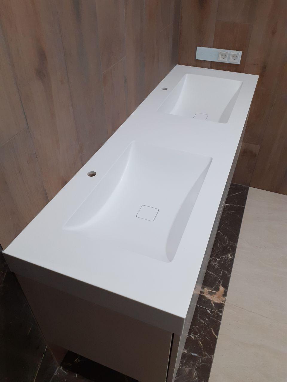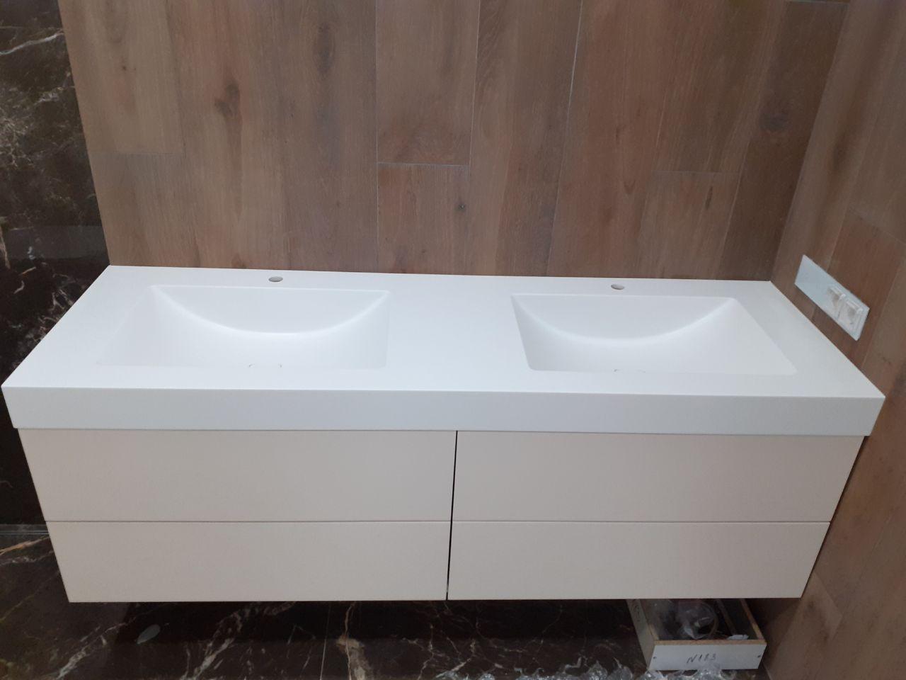 Столешница из искусственного камня с двумя раковинами для ванной комнаты