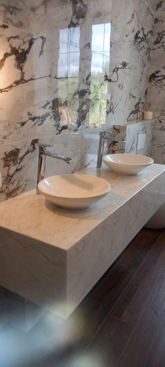 Одной из особенностей этой столешницы является ее высота, которая позволяет спрятать все коммуникации и трубы. Таким образом, вы можете насладиться безупречным внешним видом ванной комнаты, не беспокоясь о видимых элементах. Кроме того, столешница специально разработана для установки двух накладных раковин.