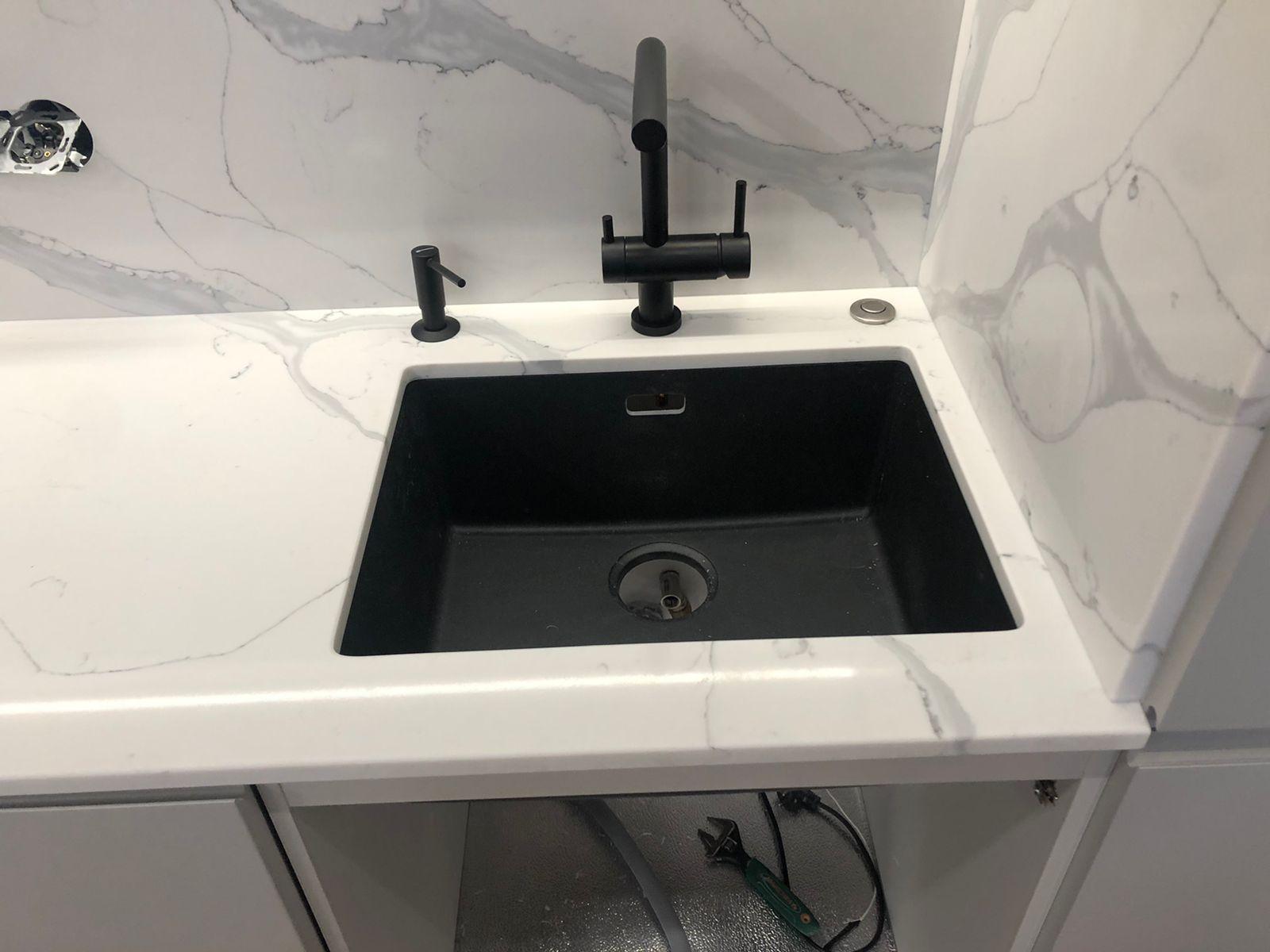 Столешница и стеновые панели изготовлены из высококачественного кварцевого агломерата - Avant Quartz 7500 Калакатта Аррас. Наша команда успешно реализовала сложный проект, облицевав всю нишу. Клиентка выбрала трендовую расцветку - белую калакатту, которая имитирует мрамор с крупными серыми прожилками. Изделия имеют глянцевую поверхность и отличается высоким качеством. В нашей компании вы легко и просто можете заказать нужные изделия для своего интерьера.