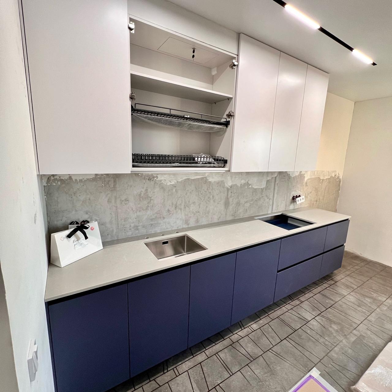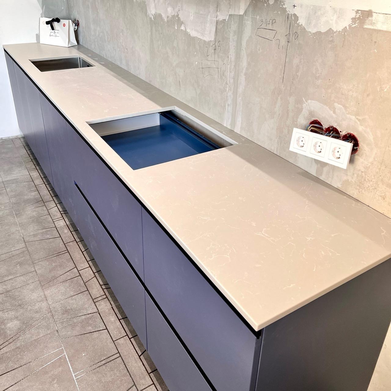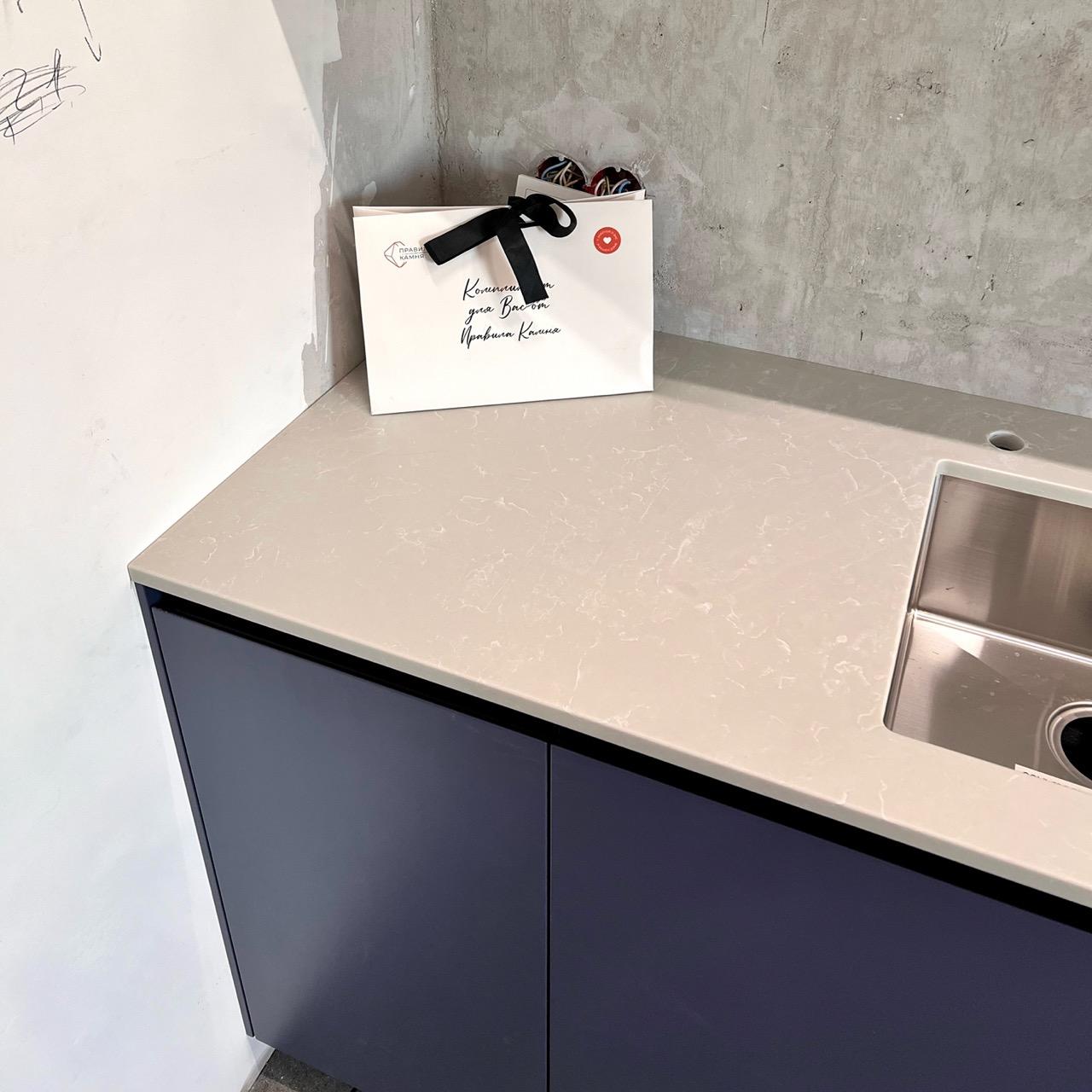 Для проекта выбрали Avarus R511 Лед Байкала. Столешницу сделали в толщину слэба - 20 мм.