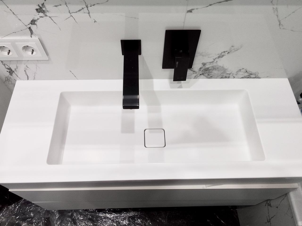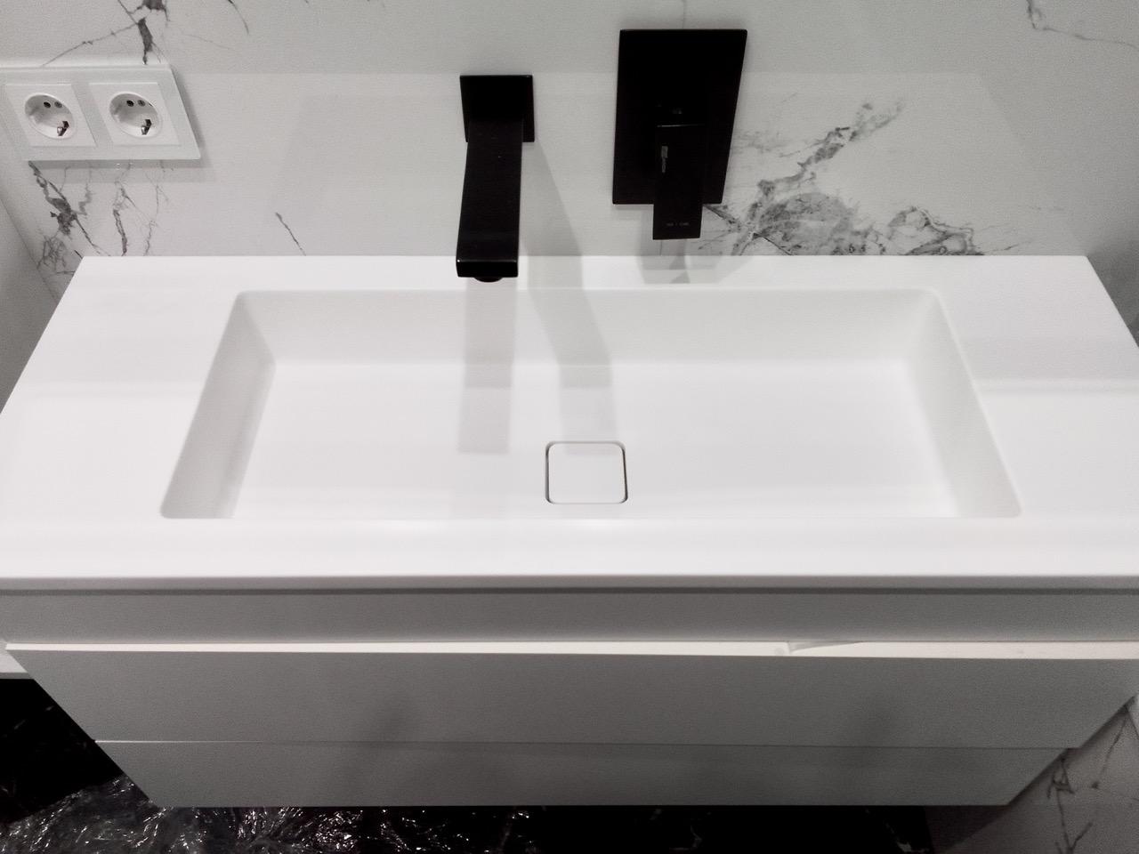 Столешница с интегрированной каменной раковиной в ванную комнату