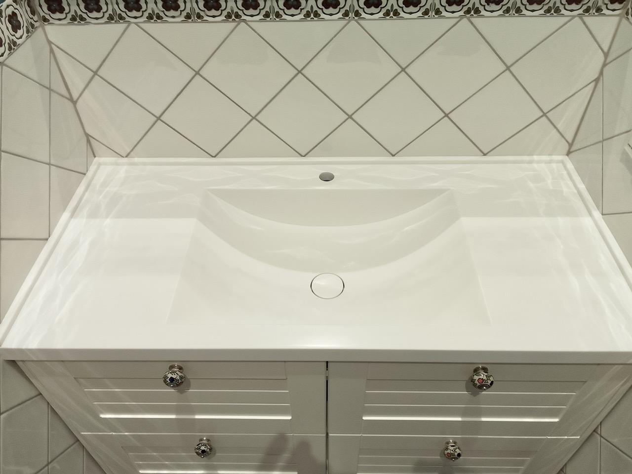 Столешница в ванную комнату с интегрированной раковиной-лодочкой