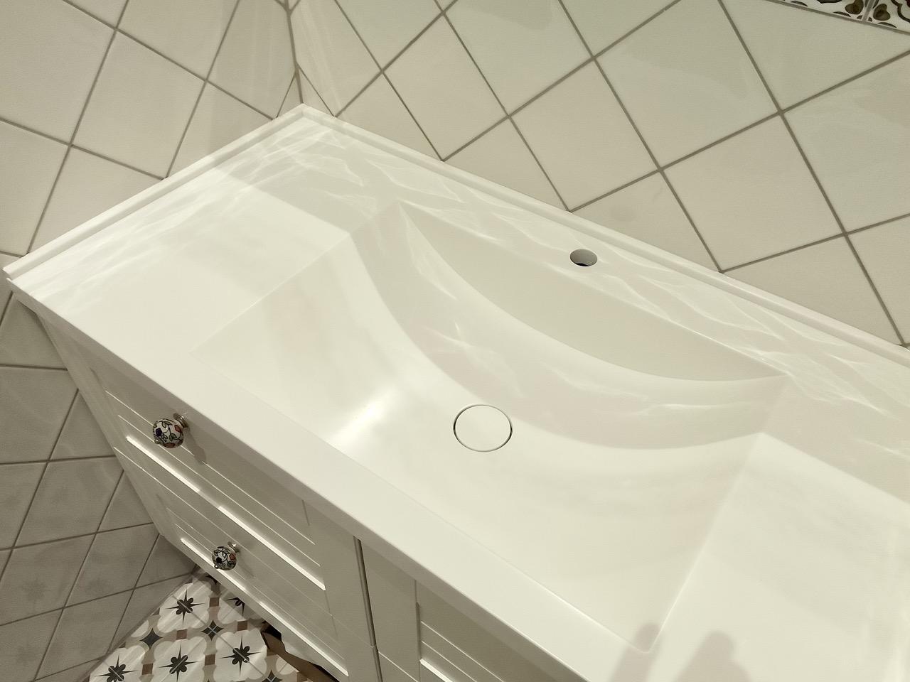 Столешница в ванную комнату с интегрированной раковиной-лодочкой