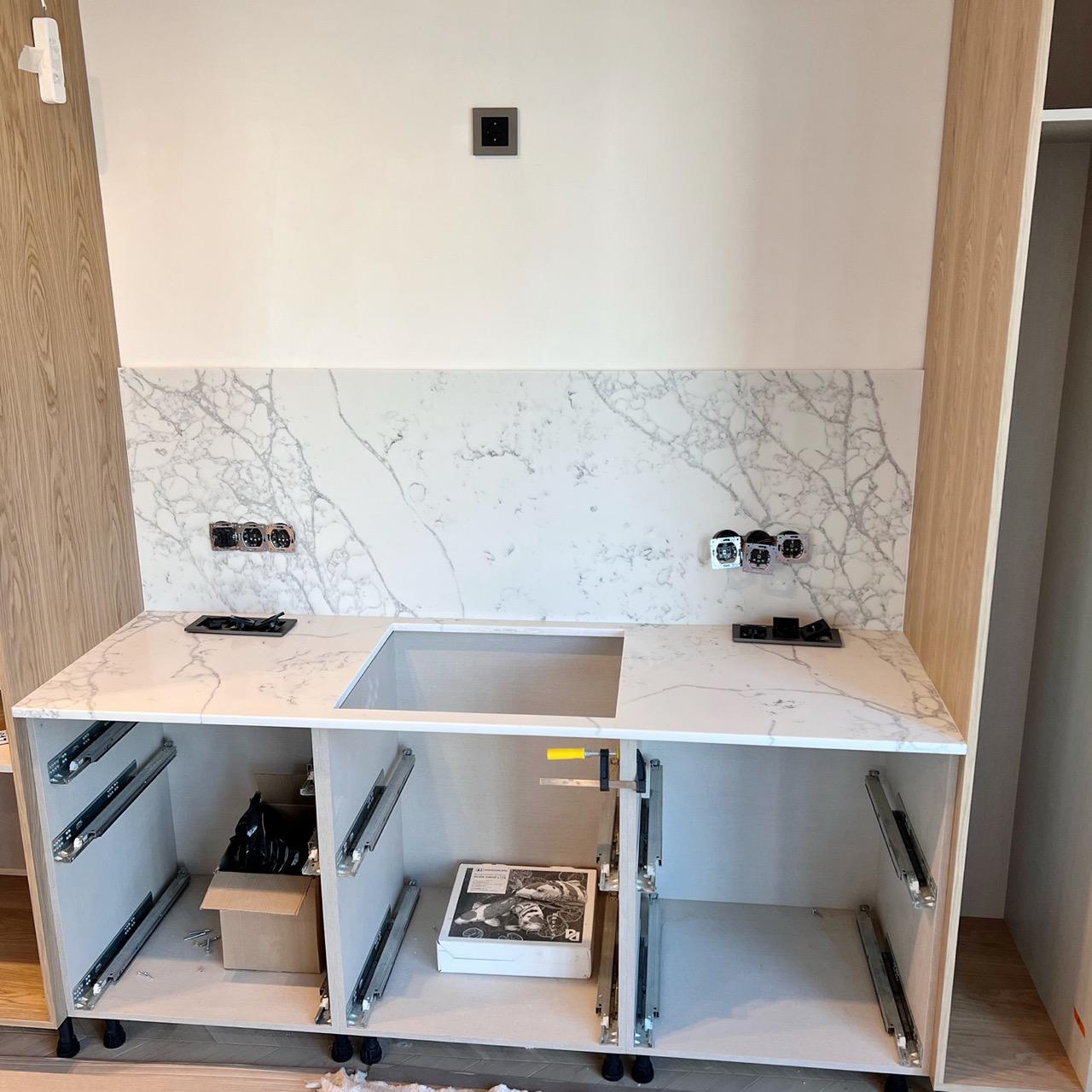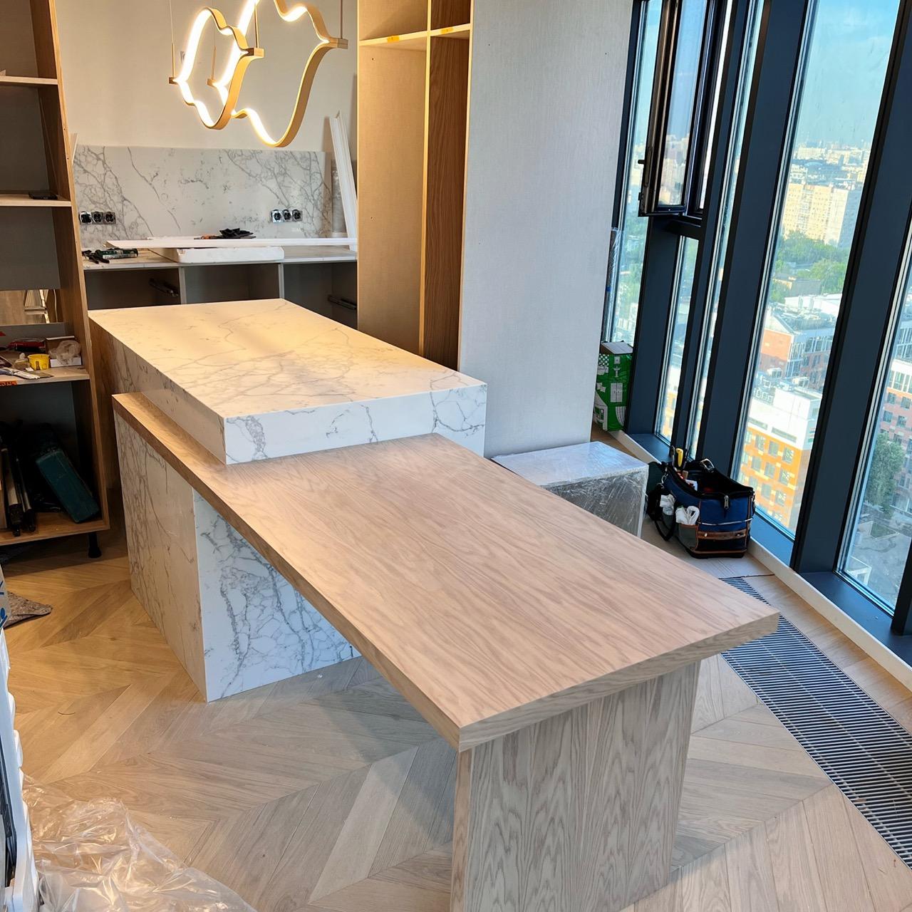 Столешницы для гарнитура и острова, фартук и полка из кварцевого агломерата