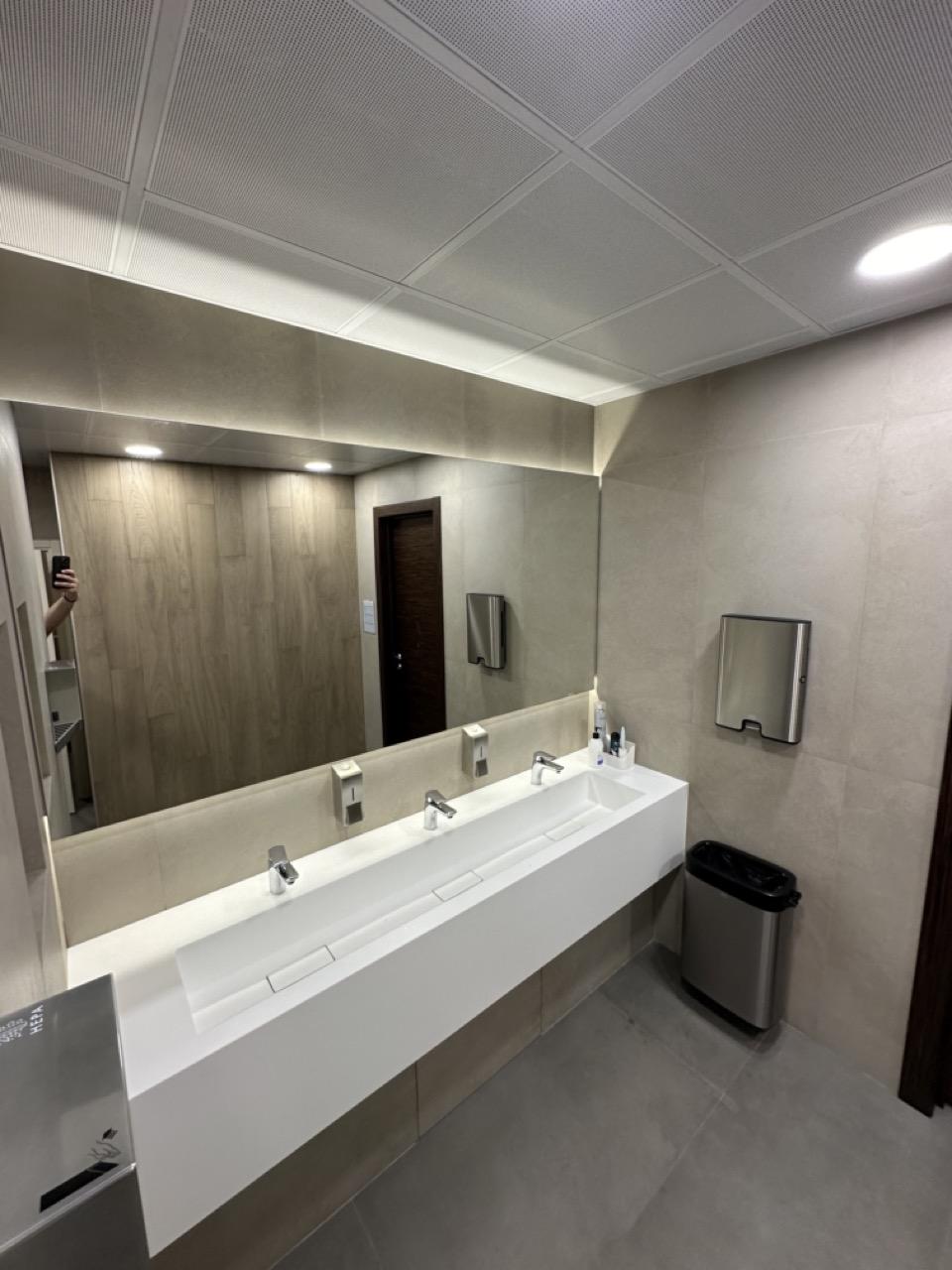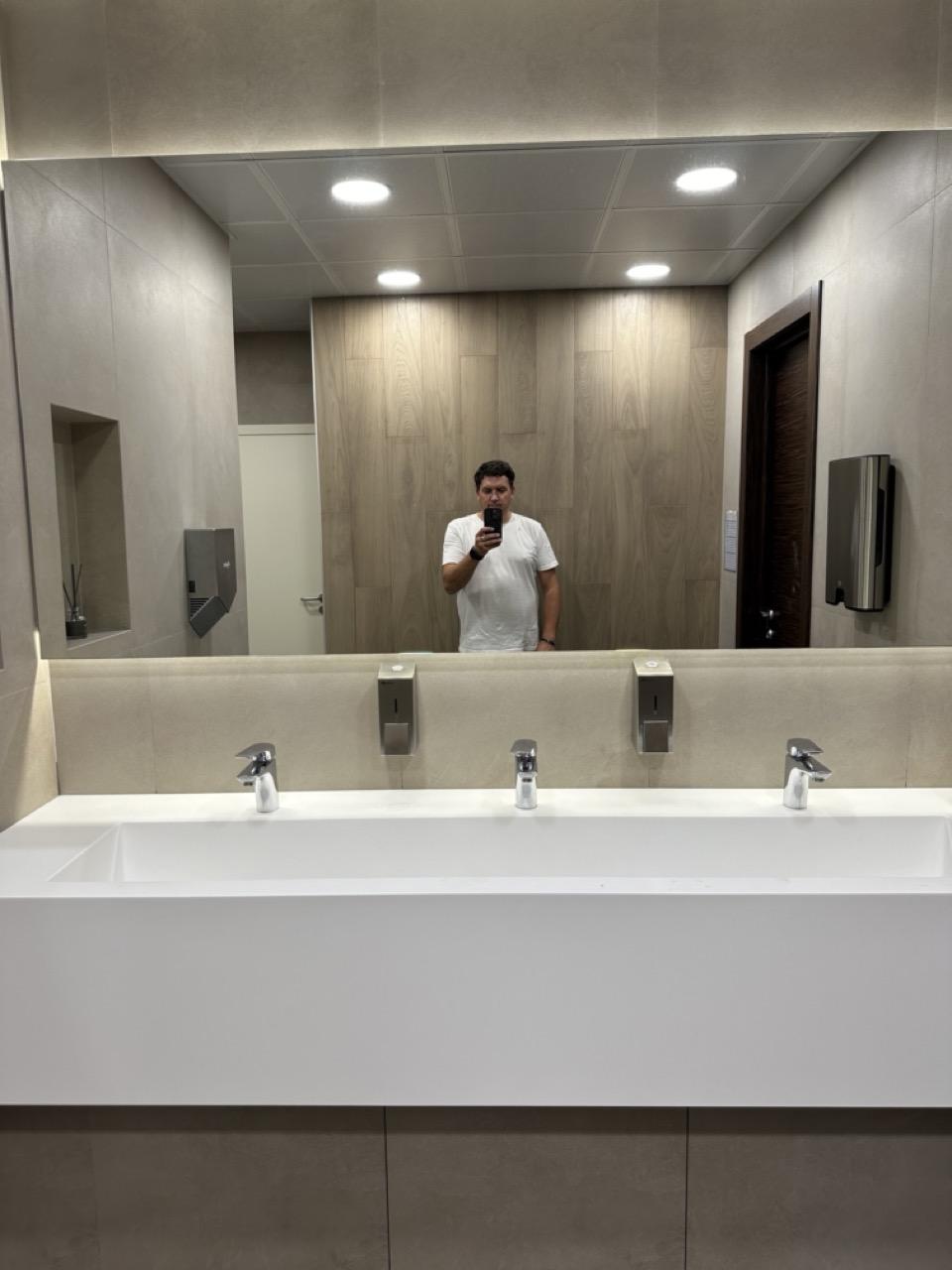 Белая тройная подвесная раковина сделана из однотонного акрилового камня Grandex P-104 Pure White.