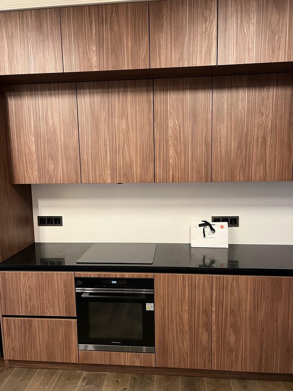 В столешнице сделали вырезы под варочную поверхность, раковину, смеситель и дозатор.
