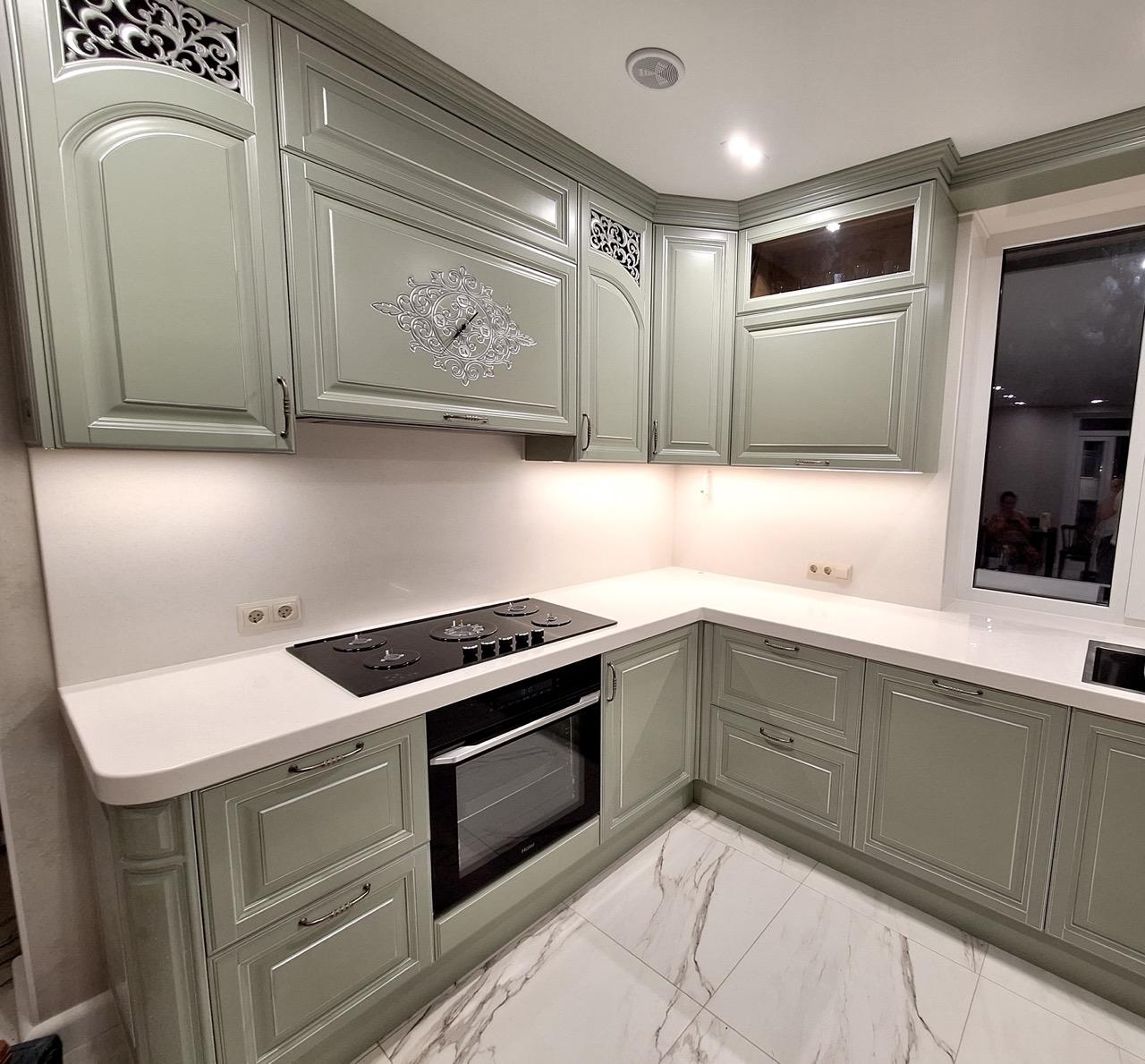 Именно из него изготовлены: бесшовная угловая столешница, фартук, подоконник и откосы.