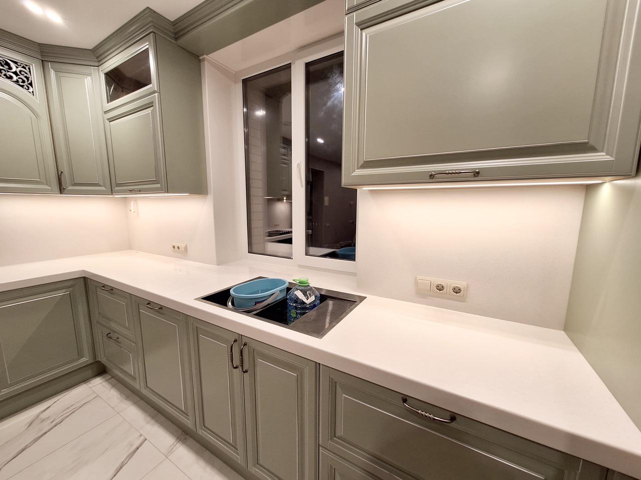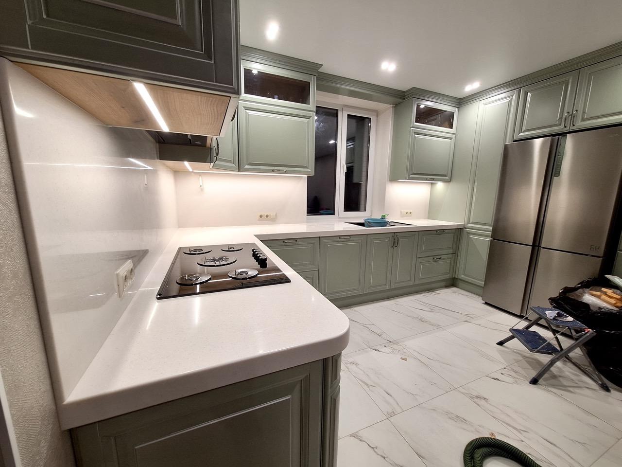 Угловая столешница, фартук, подоконник и откосы из искусственного камня